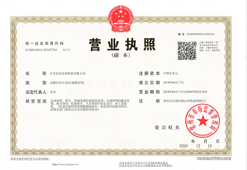 江蘇富冠金屬科技有限公司(以下簡(jiǎn)稱(chēng):“公司”)成立于2018年4月,隸屬于鑫昌泰集團(tuán),是常州市經(jīng)開(kāi)區(qū)招商引資的重點(diǎn)外資企業(yè),注冊(cè)資本1230萬(wàn)美元,座落于常州市經(jīng)開(kāi)區(qū)橫山橋智能裝備產(chǎn)業(yè)園,占地面積22762.8平方米,員工總數(shù)100人。公司主要經(jīng)營(yíng):金屬材料、模具、機(jī)械零部件的改性處理;金屬材料的激光處理;模具鋼材、機(jī)械零件、汽車(chē)零部件研發(fā)設(shè)計(jì)、加工及銷(xiāo)售。并具有真空淬火、普通淬火、調(diào)質(zhì)、去應(yīng)力回......